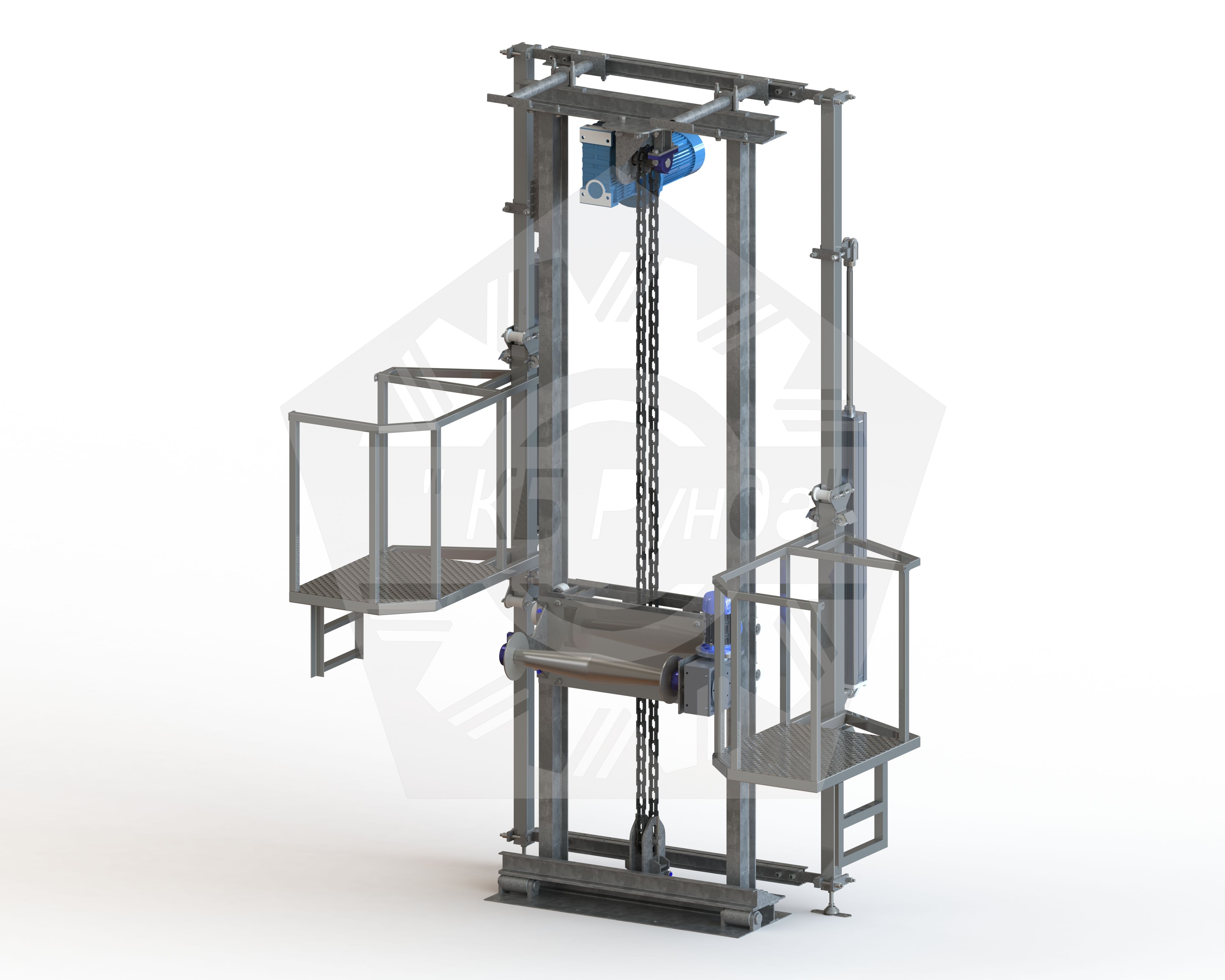 Площадки независимо друг от друга осуществляют подъём/опускание на пневматическом приводе.